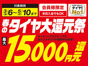 クルマのことならオートバックス大垣店へ! ウェブサイト・電話で ピット作業予約ができます! 車検のこと・法定12ヶ月点検のこと、なんでもご相談ください! 多彩なピットメニューで 愛車をケアして快適ドライブ! クルマの買取・販売、 おまかせください! キャンペーン 2026年 春のタイヤ大還元祭 – オートバックスはタイヤが安い!サイズに応じて最大15,000円還元 3月6日(金)から5月10日(日)まで実施 購入サイズに応じて最大15,000円還元!2026年春&ゴールデ 2026年春 ドライブレコーダー・電子ミラー大還元祭 – オートバックスなら対象機種購入で最大10,000円還元! 2月20日(金)から5月10日(日)まで実施 対象機種購入で最大1万円還元!春&ゴールデンウィークのドライブ 2026年春 カーナビ大還元祭 – オートバックスならカーナビの購入金額に応じて最大7万円還元! 2月20日(金)から5月10日(日)まで実施 購入金額に応じて最大7万円還元!春&ゴールデンウィークのドライ クルマを売っていただいた方に最大10万円分のギフトカードプレゼント – 2026年1月・2月・3月 オートバックスでのクルマ売却がお得! 1月17日(土)から3月8日(日)まで実施 愛車を売るなら今がお得!オートバックスはクルマを買い取らせていた 2025年-2026年 オートバックスヒートアップキャンペーン – Tune&Dress up スポーツパーツが安い! 2026年3月31日(火)まで実施中 2026年3月31日(火)までメーカー希望小売価格から最大45%OFF 安全点検を無料で実施しています いつでも無料で実施 安心・快適ドライブのためにドライブ前/後にオートバックスで安全点検をしましょう! オート キャンペーン一覧 特集 12ヶ月点検は法律で定められている必須点検です 「CARFUN」クルマに関する知識や話題のトピックスを紹介 商品情報 ブリヂストン ALENZA LX200 – 上質なドライビング体験を提供!なめらかな走行を実現するSUV向けプレミアムタイヤ 静けさと、なめらかさと。心地よさに包み込まれる。ロードノイズを従来品対比16%低減、上質なドライビング体験を ブリヂストン プレミアムコンフォートタイヤ・フィネッサ – 雨天でもしっかり止まる・曲がる安心感!多様化するカーライフに応える新ブランド・FINESSA登場 雨のち、フィネッサ。タイヤがすり減っても雨の日のあらゆるシーンでしっかり「止まる・曲がる」を実現、家族を乗せ ブリヂストン スポーツタイヤ・ポテンザシリーズ – 走りへのこだわりを追求!ツーリングやスポーティードライビングの楽しさを追求するスポーツタイヤ 「ストリート最速を追求したリアルスポーツ」「コンフォート性能にも配慮したプレミアムスポーツ」「幅広い車種に対 2025年-2026年おすすめのタイヤチェーン – 今シーズンはコレ!雪道や凍結路で圧倒的なグリップ力を持つタイヤチェーン 降雪時の寒い場所で、素早く、ラクに、確実に装着可能!雪道や凍結路で圧倒的なグリップ力を持つタイヤチェーンは冬 2025年-2026年スタッドレスタイヤ新製品 – 今シーズンはコレ!おすすめの冬タイヤ情報 凍結路面・雪上路面で安定走行!オートバックスでは、軽自動車・普通車からミニバン・SUVまで様々な種類・サイズ オートバックスはタイヤが安い! – 低価格のプライベートブランドタイヤ 軽自動車からミニバン・商用車向けまで!輸入タイヤから国産タイヤまで!オートバックスはプライベートブランドタイ 2025年 厳選!夏の日差し対策サンシェード – 今年のトレンドは傘型サンシェード!車内の温度上昇を和らげるお手軽アイテム 「暑い」「熱い」「しばらく出発できない」を解消!オートバックスでは車内の温度上昇を和らげるお手軽アイテム・サ 2025年 厳選!クルマの中でも扇風機 – エアコンの直風は苦手!カーファンはやわらかな風で快適に涼しさをアップします 「エアコンの冷気や直風が苦手」な方へ!オートバックスではやわらかな風で快適に涼しさがアップする車内用の扇風機 [車検制度改正] 2025年4月以降 車検満了日の「2ヶ月前」から車検を受けられます 車検の受検可能期間がこれまでの「車検満了日の1ヶ月前」から「車検満了日の2ヶ月前」に!繁忙期を避けて余裕を持 突然やってくるバッテリー上がりを予防 – クルマのトラブル原因NO.1!バッテリーは消耗品です 無料点検をご利用ください!バッテリー上がりを予防して安心ドライブ。バッテリー交換も経験豊富な整備士がいるオー 商品情報一覧 新着情報 2026.03.03 2026年 春のタイヤ大還元祭 – オートバックスはタイヤが安い!サイズに応じて最大15,000円還元 2026.02.26 ブリヂストン ALENZA LX200 – 上質なドライビング体験を提供!なめらかな走行を実現するSUV向けプレミアムタイヤ 2026.02.19 2026年春 ドライブレコーダー・電子ミラー大還元祭 – オートバックスなら対象機種購入で最大10,000円還元! 2026.02.06 2026年春 カーナビ大還元祭 – オートバックスならカーナビの購入金額に応じて最大7万円還元! 2026.01.26 ブリヂストン プレミアムコンフォートタイヤ・フィネッサ – 雨天でもしっかり止まる・曲がる安心感!多様化するカーライ